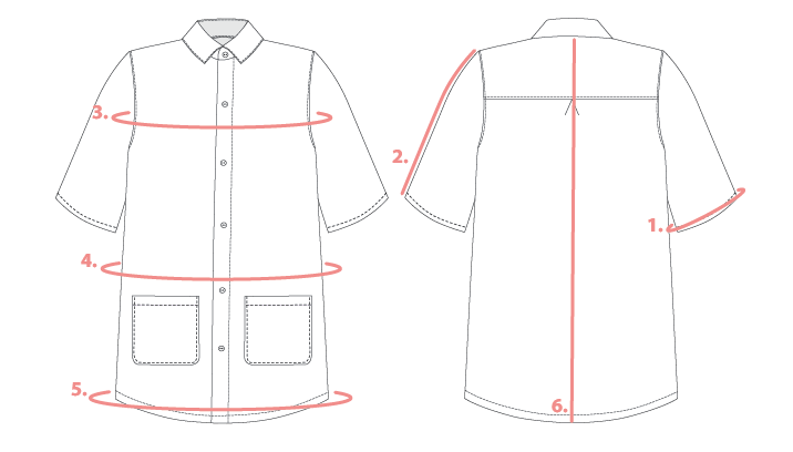 | 6. Largo de camisa | 65cm | 67cm | 69cm | 71cm |