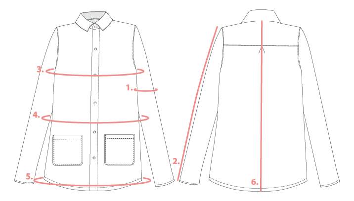 | 4. Largo de camisa | 48cm | 49cm | 50cm | 51cm |
